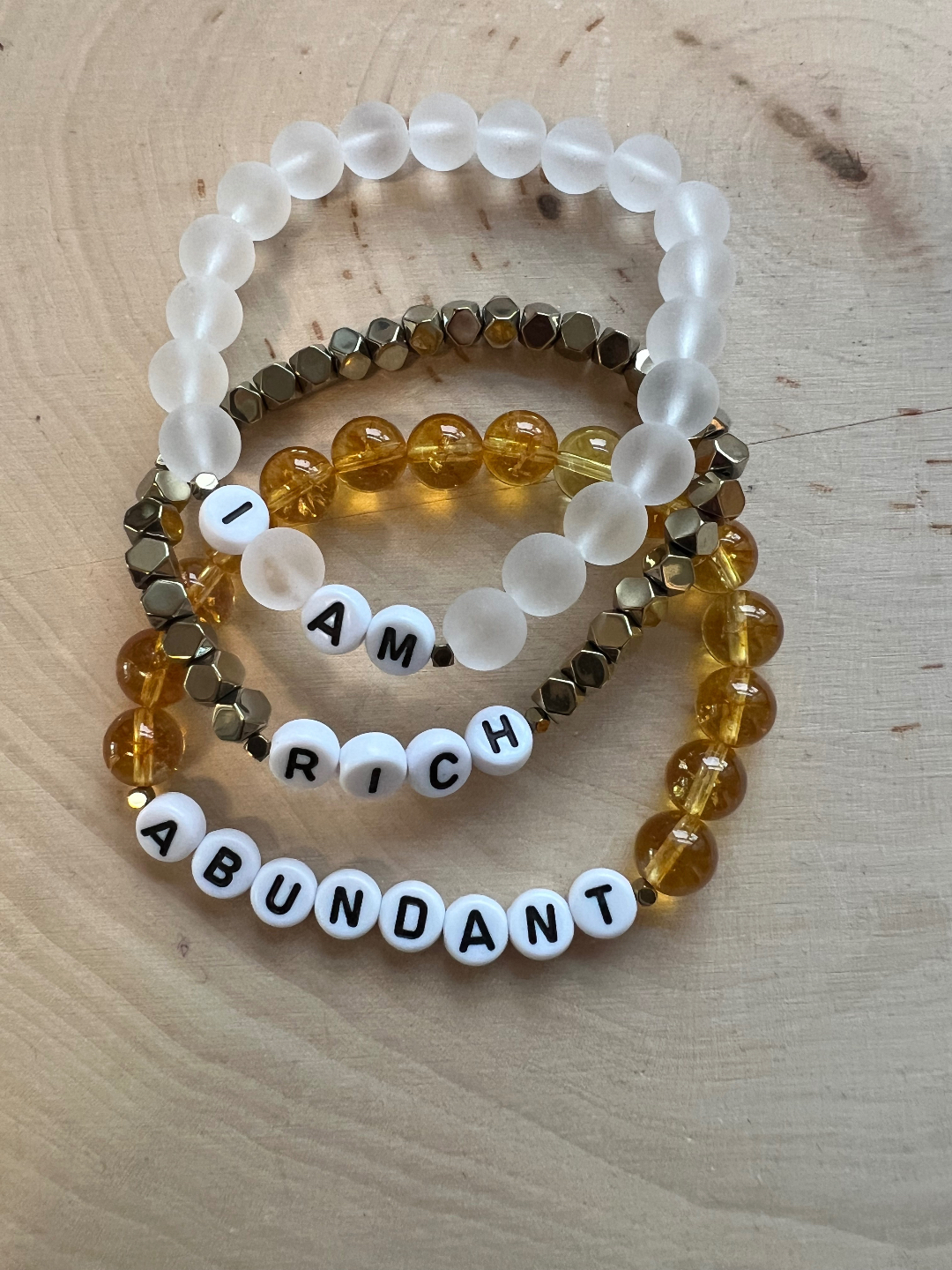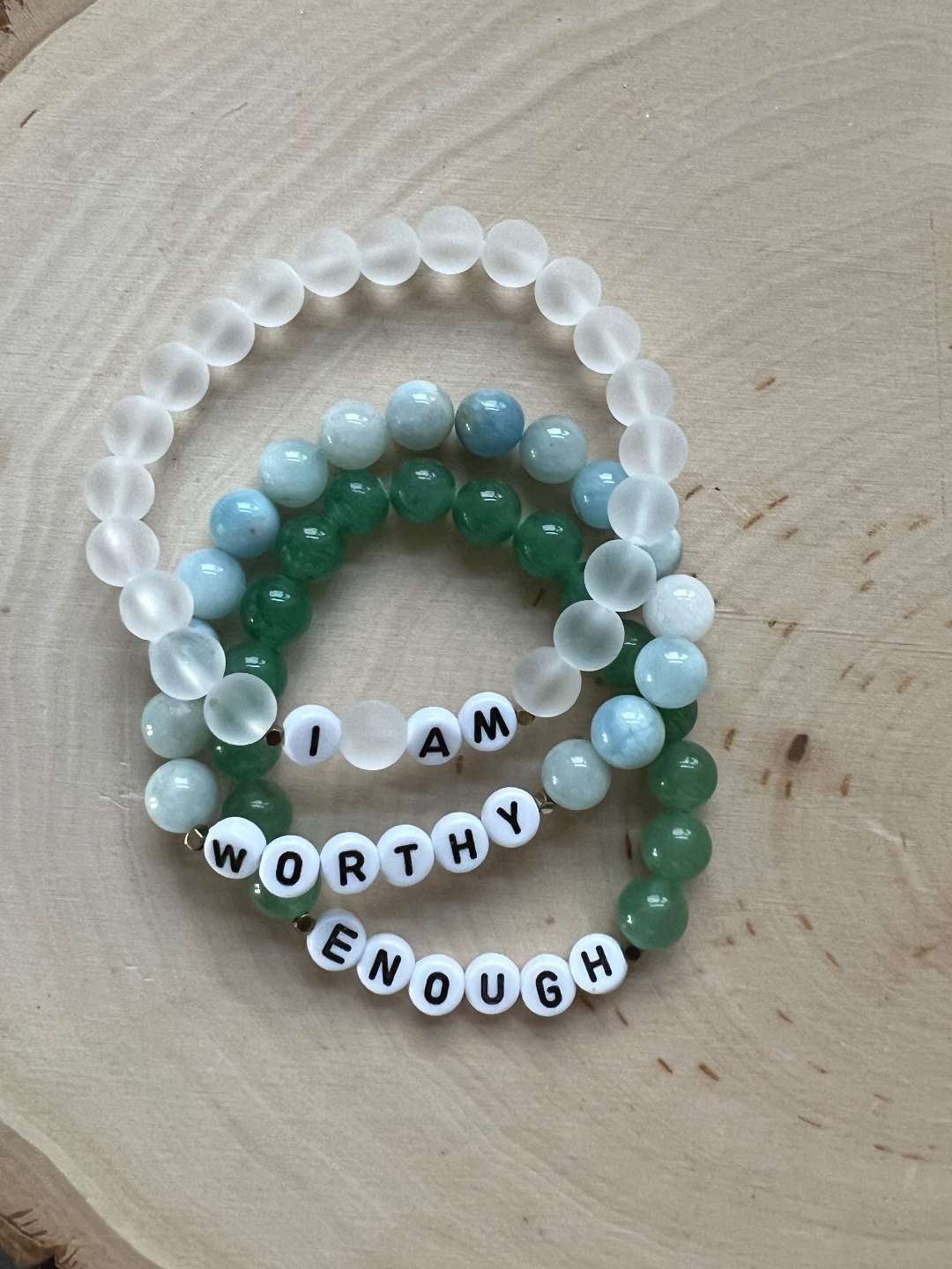 Designed to be worn as a daily reminder, your bracelet invites you to pause, breathe and return to the affirmation you’re choosing to embody- aligning emotional balance, mindfulness and self-connection. Whether part of a personal ritual or simply worn throughout your day, each bracelet serves as an energetic companion, supporting clarity, intention and alignment from the INSIDE OUT.