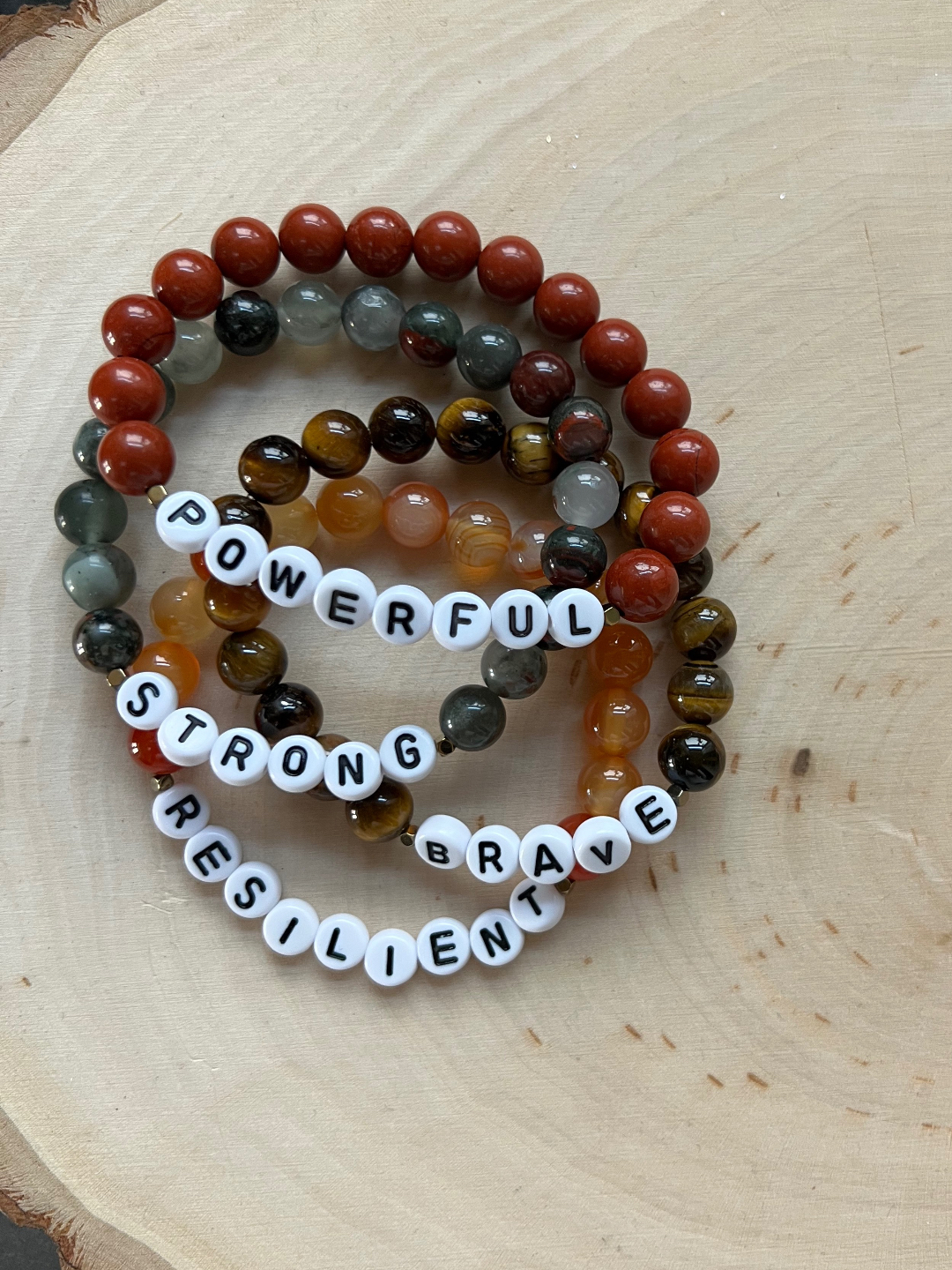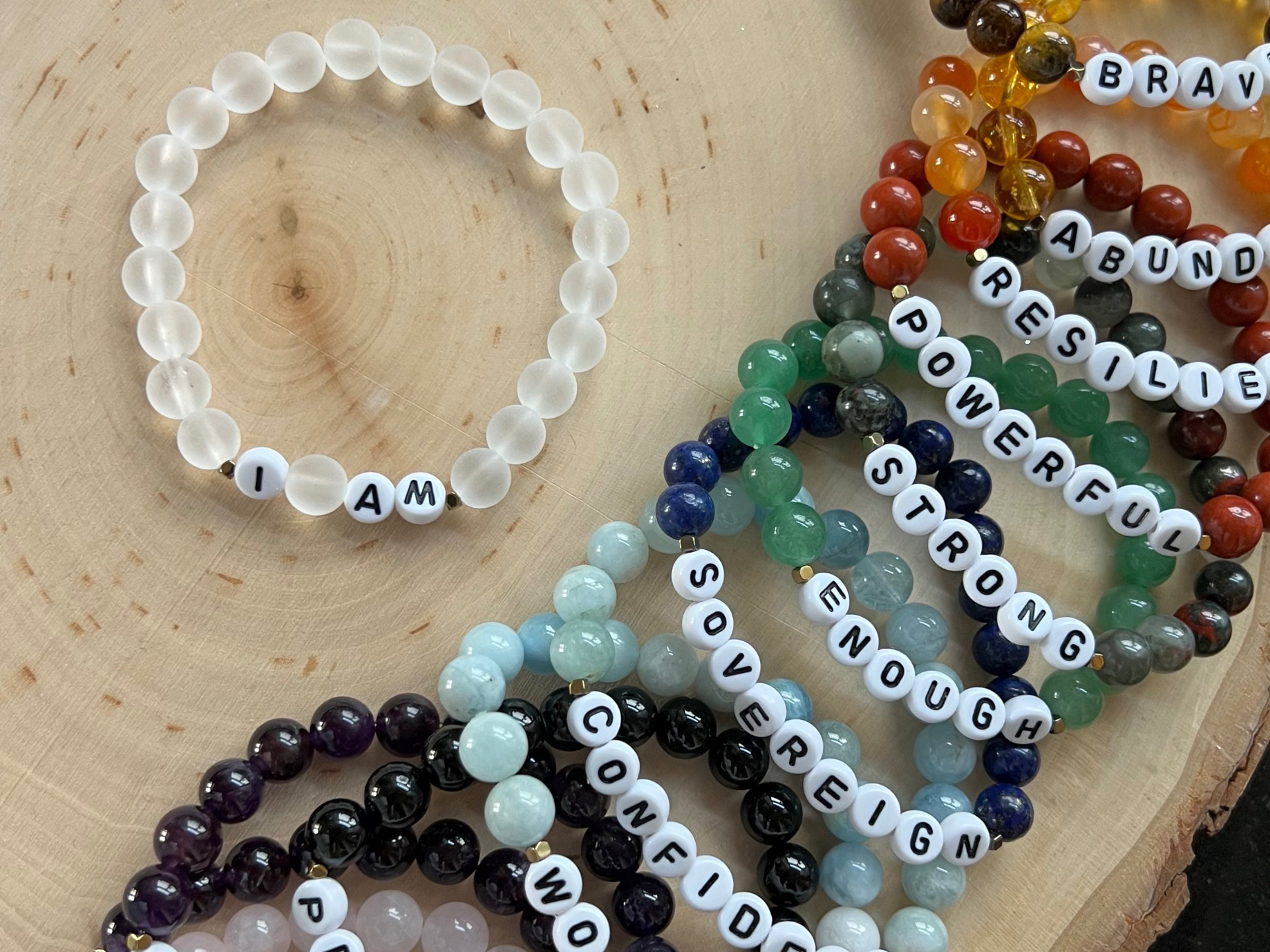 Each bracelet is intentionally created with crystals chosen to support a specific affirmation and infused with Reiki energy. Together, the crystals and Reiki offer supportive energy- helping you stay grounded, centered and connected to your intention throughout the day.